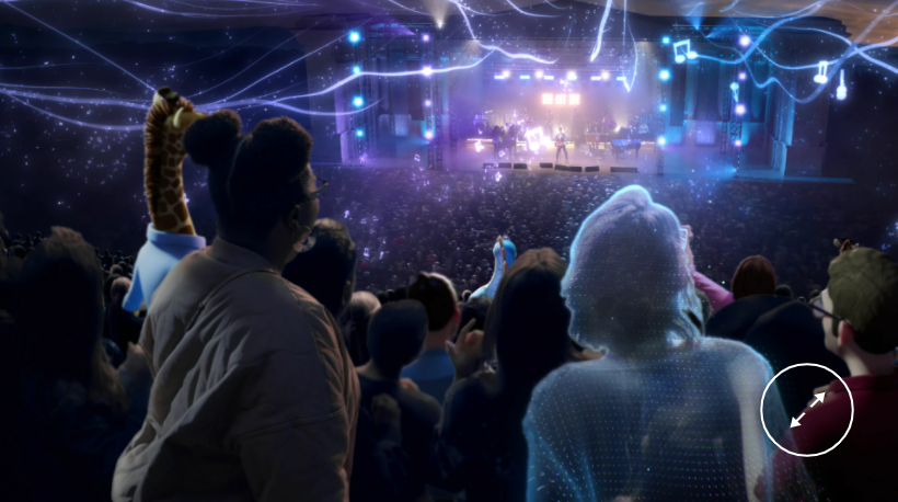 En la imagen superior podemos ver una recreación donde dos amigas, a través de sus avatares, asisten a un concierto en el metaverso.