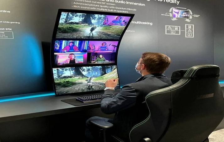 Y como segundo producto destacado de Samsung tenemos un monitor curvo de 55 pulgadas.El Samsung Odyssey Ark es un monitor curvo de 55 pulgadas que permite girar sobre un pie para pasar a una disposición vertical donde la parte superior “cubra” la cabeza y generar así una experiencia inmersiva. Desde Samsung exponen que es el monitor perfecto para gente que hace de todo con su ordenador: videojuegos, teletrabajo, edición de video y fotografía, etc. Por ahora se desconoce su precio y fecha exacta de lanzamiento.