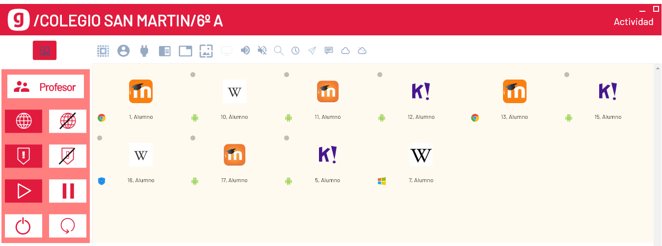 - Un Gestor de Aula, que permita al profesorado interactuar con sus estudiantes a la vez que le permite dirigir su clase sin perder la autoridad, como ejemplo diré que puede hacer que se abra una página web en los dispositivos de los estudiantes para evitar pérdidas de tiempo, y ver las miniaturas de sus pantallas entre otras funciones.