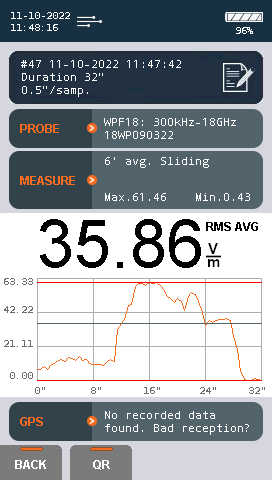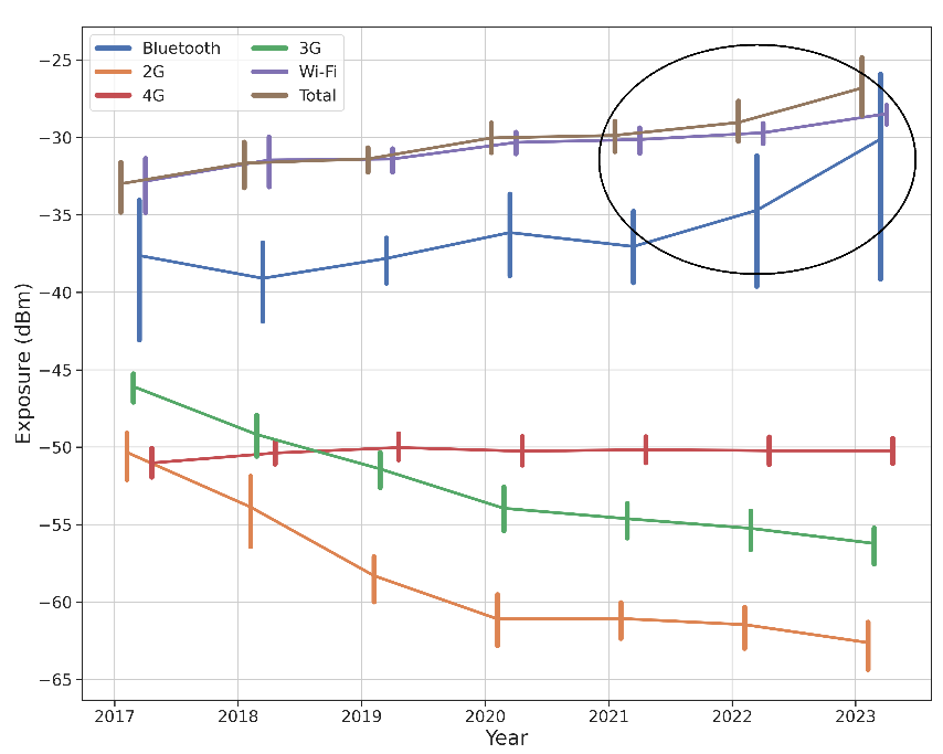 Y la cantidad de energía electromagnética presente en el espacio libre no cesa de aumentar, como se puede ver en la siguiente gráfica, resultado de los trabajos de investigación del equipo desarrollador de la app ElectroSmart.