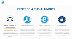 Estos productos, school suite y soluciones rgpd, complementan el lanzamiento de nuestro proyecto de protección al menor en el uso de la movilidad, denominado el Sistema eProtect+ de Virtual Bodyguard[1]© (vB!:-), que fue concebido para extender la estela de seguridad, desde el centro a la familia, y que aparece en distintos medios de comunicación: rtvcyl y guipukuagaur.