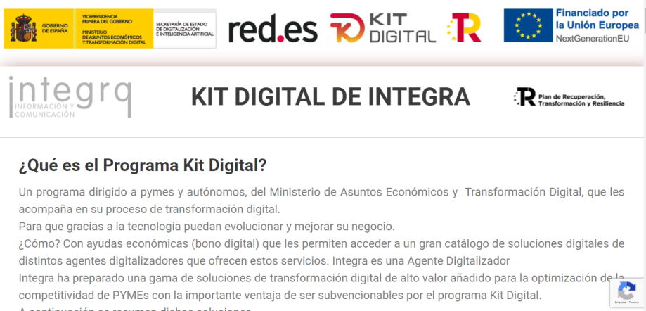 En la landing page Kit Digital de Integra se detalla de forma exhaustiva la funcionalidad y precios de las soluciones ofrecidas.
