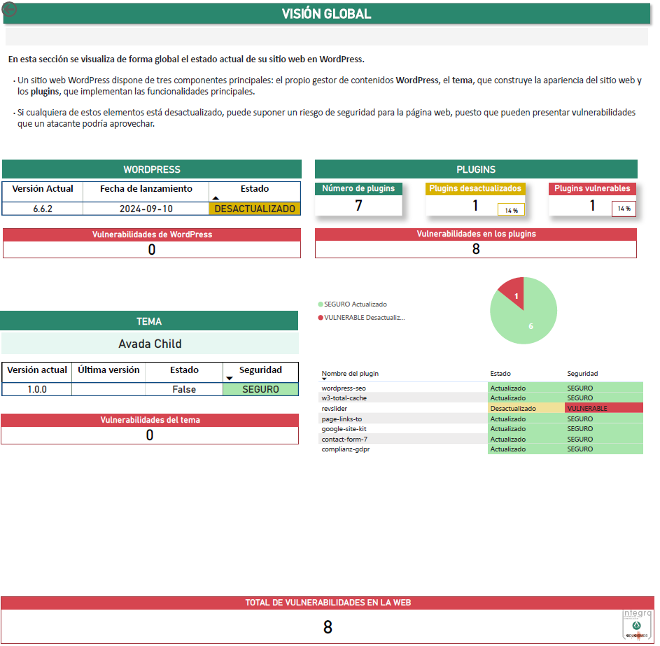 Conscientes de estos riesgos, hemos desarrollado un servicio especializado de análisis de vulnerabilidades para WordPress. Nuestra herramienta escanea tu sitio en busca de fallos de seguridad y genera un informe detallado, claro y fácil de entender, permitiéndote tomar medidas inmediatas para proteger tu negocio.