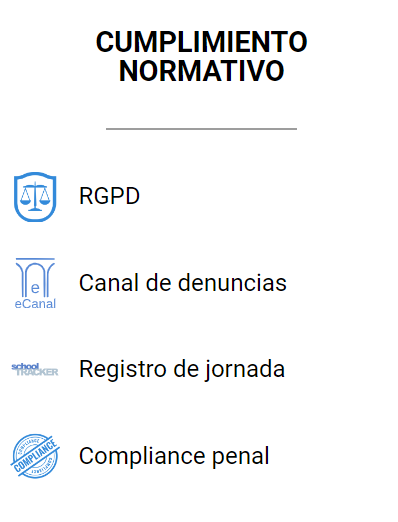 El primer pilar de School Suite es el cumplimiento normativo. En un mundo donde las regulaciones cambian constantemente y surgen nuevas exigencias, es crucial que los centros educativos se mantengan al día con las leyes y normativas. School Suite ofrece una gama de servicios que ayudan a las entidades educativas a cumplir con la normativa vigente, incluyendo RGPD, Canal de Denuncias, Registro de Jornada o Compliance Penal.