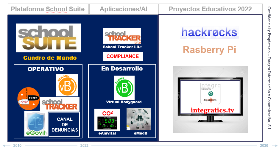 Tras ese gran hito, Integra ha venido realizando un crecimiento sostenible y sostenido, a lo largo del tiempo, que ha permitido a la empresa continuar su senda en el desarrollo de soluciones. Un aspecto reseñable, en este último sentido, ha sido avanzar desde el desarrollo de herramientas ad hoc, en el entorno de gestión y comunicación, para así crear herramientas que permitan, a los responsables de las instituciones, la toma de decisiones a través de la tecnología o IT Governance. Este posicionamiento está fuertemente apalancado en el uso seguro de las soluciones tecnológicas existentes – propias y de terceros – por parte de los centros educativos.